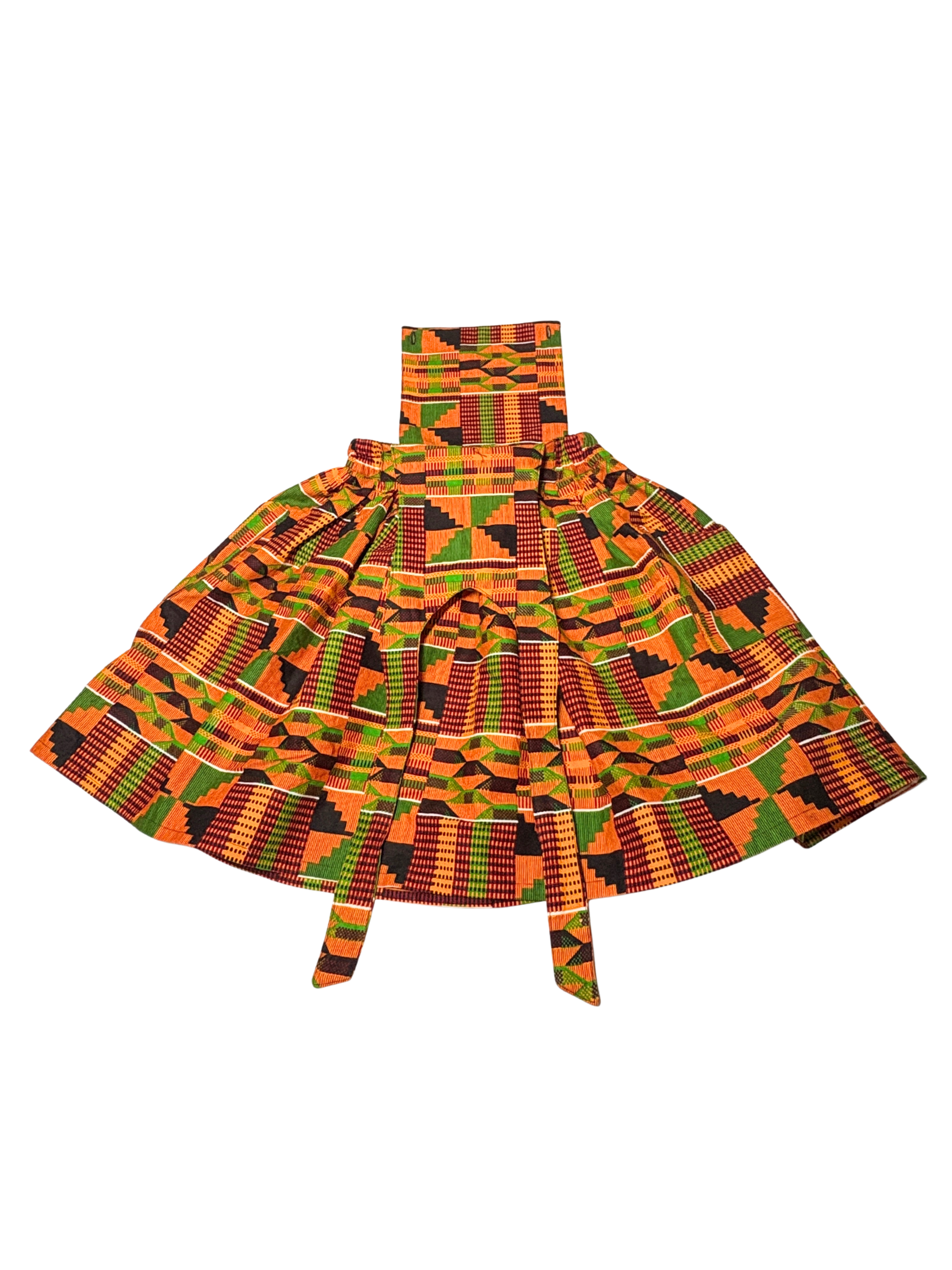 Vestido tipo pichi con estampado africano Kente naranja. Este precioso delantal de algodón con estampado africano tiene costuras terminadas profesionalmente. El corpiño tiene dos tirantes y se ata a través de un ojal en la parte delantera, lo que hace que la longitud de la correa sea ajustable.