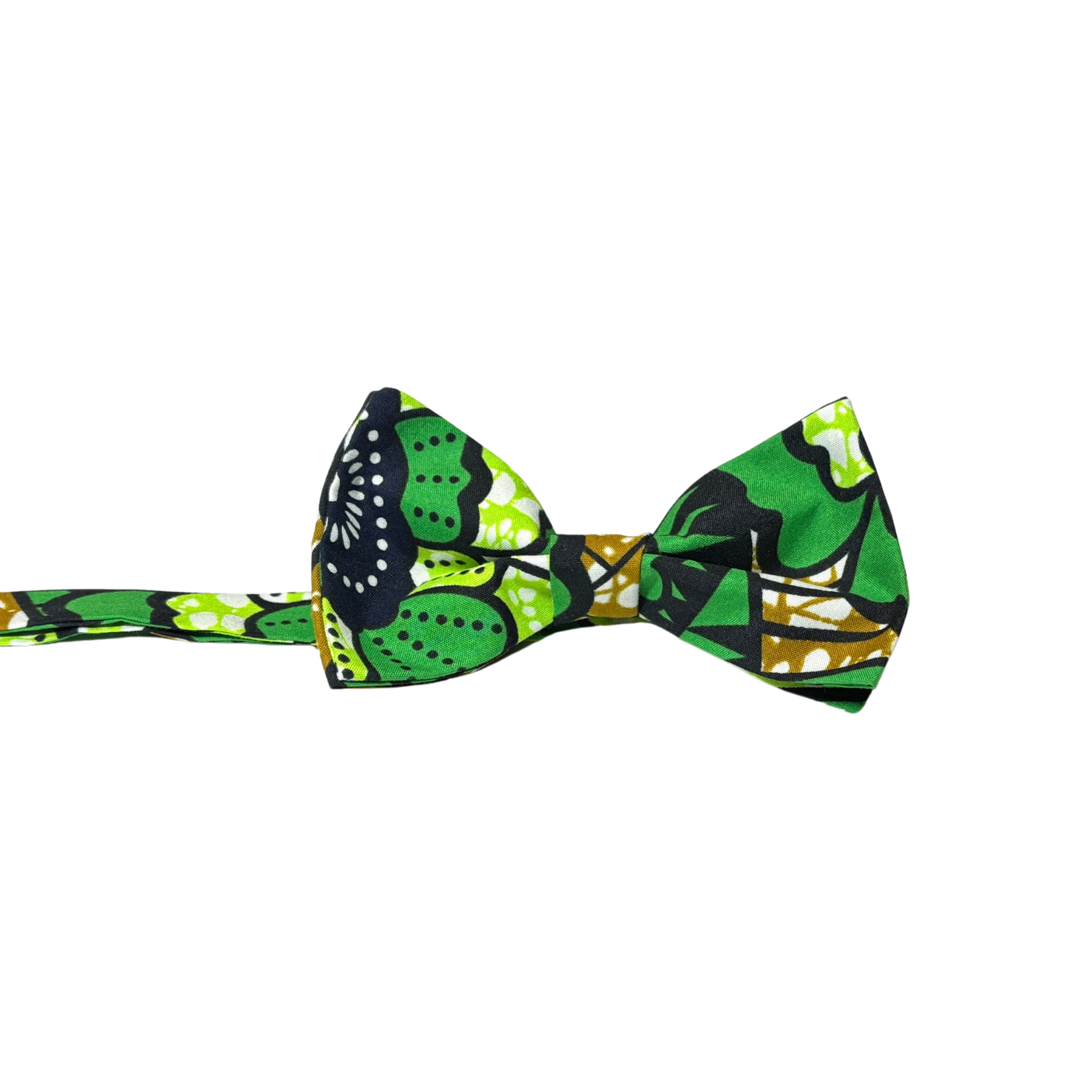 Featuring bold green, white, and black patterns inspired by Ankara wax fabric, this bow tie is a go-to for anyone passionate about Afrocentric fashion. Want more options? Check out our vibrant Sunset Orange design too!
