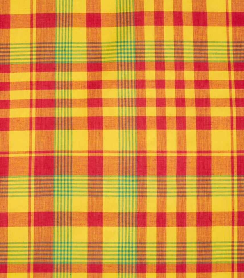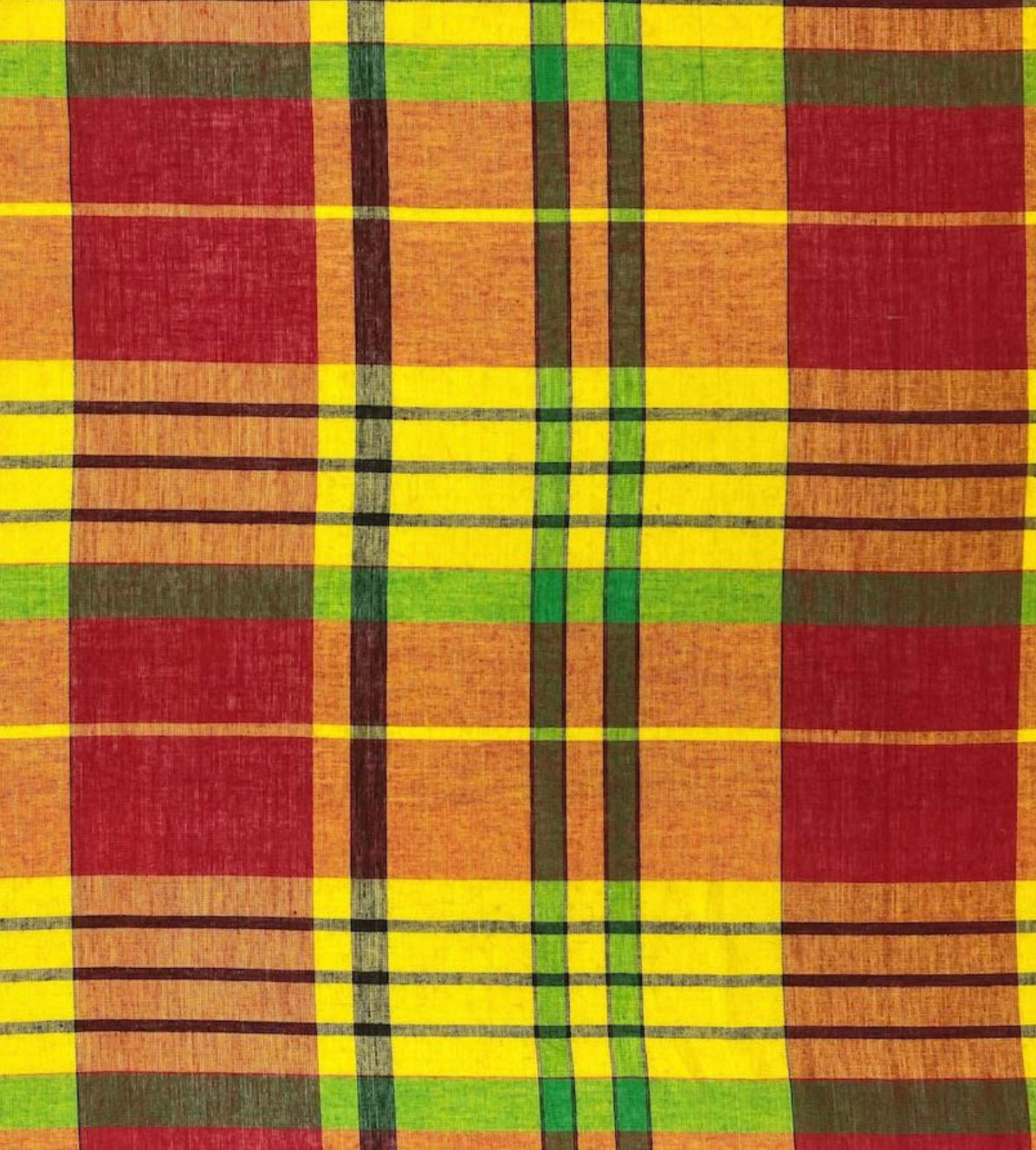 Please note: Madras print placement and color shades may vary slightly from batch to batch—each piece is unique! Option 2 dress with red bodice and underlayer yellow ruffle shown in pic.Mix and match fabrics and colors to make your own Madras dress. Dress options include rich colors of red, green, yellow, black and the Madras plaid designs.