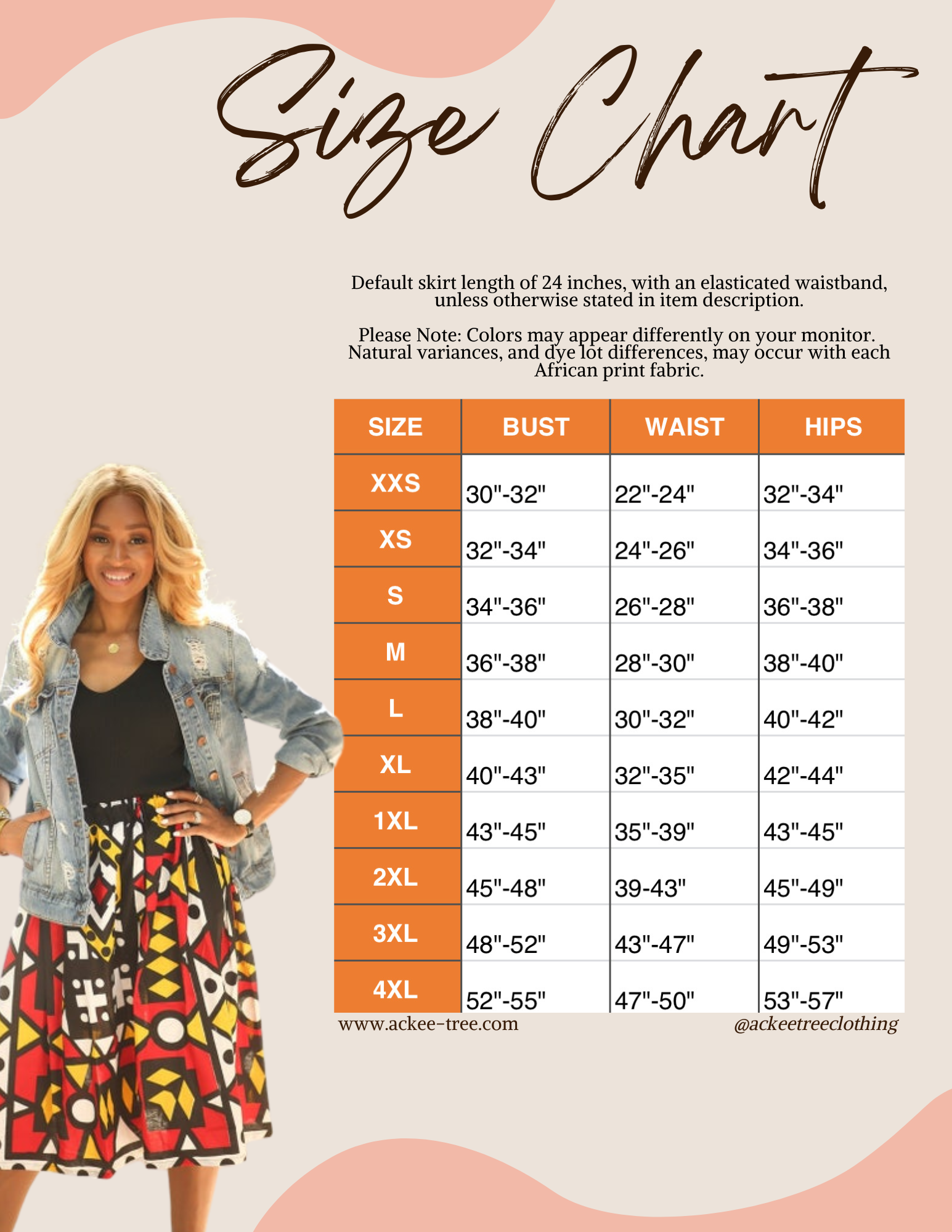 The head wrap, has rolled edges and is approximately 6” * 56” for kids and 8” by 60” for adults and comes untied. The OPTIONAL sash is double layered and is approximately 3” * 56” for kids and 4” by 72” for adults. This is one of our fastest shipping sets, able to be shipped in just 3 business days. This bandana skirt set is one of our shorter skirt sets so please check the measurements carefully.