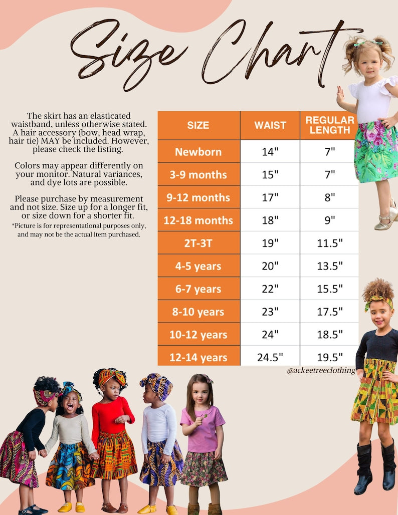 Available in toddlers and girls sizes 2T through 14. Please purchase by size/measurement and NOT age for best fit. Waist stretches comfortably.