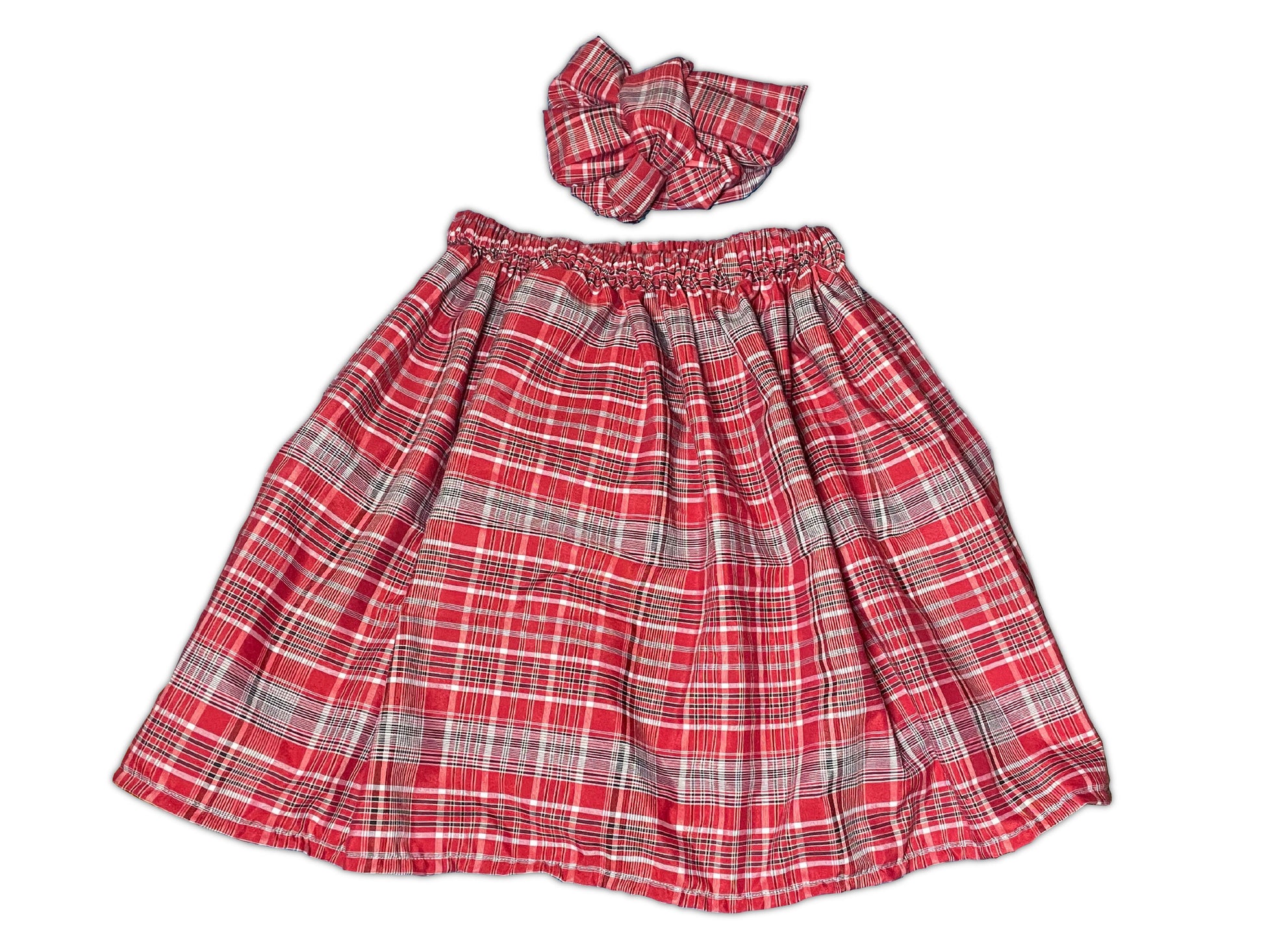 Women’s Jamaican cultural traditional Jamaican Bandana Skirt and Headwrap. Made from authentic Jamaican bandana fabric, this elastic waist skirt comes with a head wrap. From toddlers to teens and even adult women, this Jamaican outfit is perfect for showcasing the bold red with blue and white plaid Jamaican print, that represents the rich culture of Jamaica.